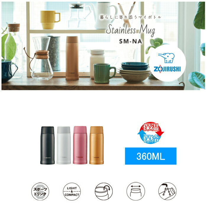 象印 水筒 マグ ミニ サイズ 子供 大人コーヒー スポーツドリンク対応 おしゃれ 保温 保冷 360ml ステンレスボトル SM-NA36-WA ホワイト 子供 父の日/運動会 父の日/運動会 父の日